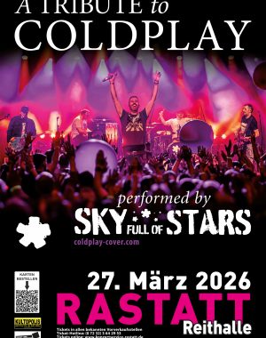 27. März 2026, 20:00 Uhr Reithalle Rastatt A Tribute to Coldplay “An EVENING of COLDPLAY MUSIC” Stadionhymnen, gefühlvolle Balladen, eingängige Ohrwurm-Melodien. All das beschreibt die grenzenlose und farbenfrohe Welt von COLDPLAY, einer der erfolgreichsten Bands des 21. […] Tickets ab / Für Euro 32,90