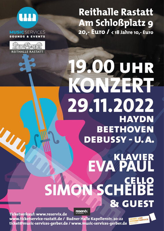 am 29.11.2022 findet in unserer Eigenschaft als Konzertveranstalter unser erstes Konzert in der Reithalle Rastatt statt. Wir präsentieren ein virtuoses Konzert mit Klavier & Cello, modern interpretiert.