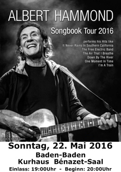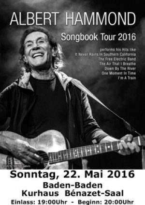 Albert Hammond wurde 1944 in London geboren, zog mit seinen Eltern aber bald darauf zurück in seine Heimat Gibraltar. Bereits als Kind sang er im Kirchenchor und machte erste Demoaufnahmen, mit 14 folgten dann die ersten Auftritte zusammen mit Richard Cartwright. Im Alter von 18 Jahren kehrte Hammond schließlich nach England zurück, dort begann seine Karriere als Songwriter und Komponist. Den Globetrotter hielt es jedoch nicht auf der Insel: 1972 machte er sich auf den Weg in die USA, wo er schließlich seinen großen Hit „It Never Rains in Southern California“ produzierte, der Platz fünf der US-Charts erreichte und ihm den internationalen Durchbruch bescherte. Ende der 80er verlegte er sich dann schließlich auf das Songwriting. „One Moment in Time“ von Whitney Houston und „I don’t wanna lose you“ von Tina Turner sind nur zwei seiner herausragenden Erfolge. 2008 wurde er in die Songwriters Hall of Fame aufgenommen.
