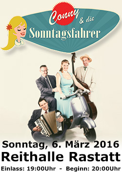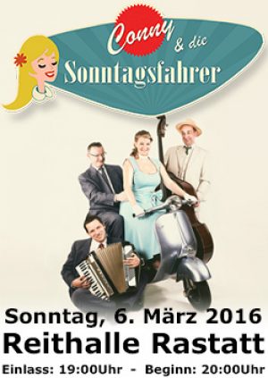 Erleben Sie mit Conny und den Sonntagfahrern eine musikalische Zeitreise zurück in die Wirtschaftswunderzeit vergessen Sie nicht, Ihren Hüftschwung nochmal zu üben, denn wenn die vier Musiker loslegen, werden Sie sich nicht allzu lang auf den Stühlen halten können.