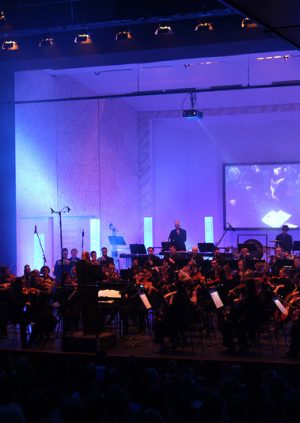 Beeindruckende Bilder auf Großbildleinwand und Lichteffekte verstärken diese verzaubernde Atmosphäre.