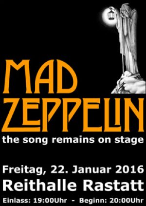 MAD ZEPPELIN ist seit Sommer 2000 bundesweit unterwegs und hat sich seitdem den Ruf eines der besten LED-ZEPPELIN-Tribute-Acts Europas erspielt.