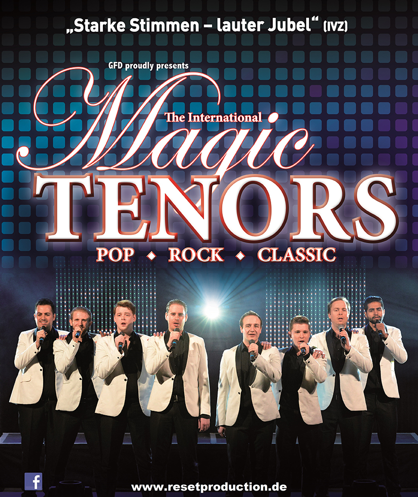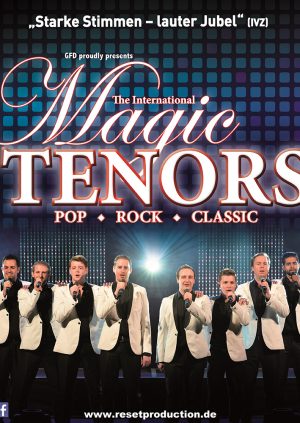 Die letzte Tour war ein voller Erfolg – die charmanten Gentlemen rissen das Publikum in Deutschland von den Stühlen: Die gelungene Mischung aus erstklassigem Live-Gesang, witzigen Moderationen, Tanzeinlagen und Bühnenshow faszinierte die Liebhaber verschiedenster Musikrichtungen gleichermaßen. Stimmgewaltig und voller Lebenslust präsentieren die INTERNATIONAL MAGIC TENORS jetzt wieder musikalische Highlights nonstop: Von deutschen Schlagern über Pophymnen und großen Rocksongs bis hin zu klassischen Arien punktet die Show mit einem überaus vielseitigen Programm. Mit ihren einzigartigen Stimmen interpretieren die INTERNATIONAL MAGIC TENORS ihre Songs manchmal traditionell – manchmal neu und schenken dem Publikum ein hochkarätiges Showerlebnis. Mit dynamischer Bühnenpräsenz und einem sagenhaften Repertoire liefern die jungen Darsteller über zwei Stunden mitreißende Unterhaltung.